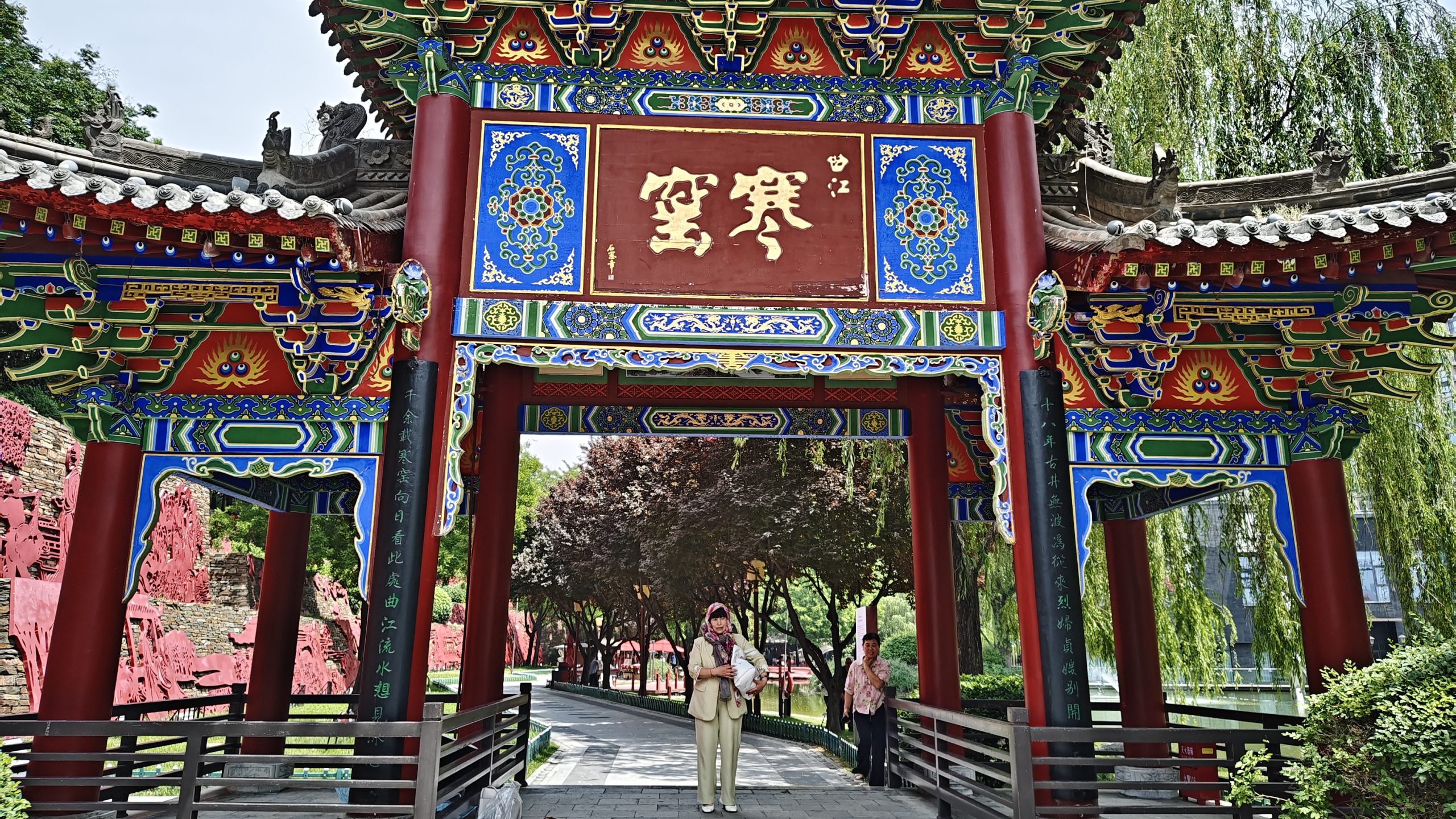 毗邻的公园叫"曲江寒窑遗址公园","寒窑"的门庭一改之前的朴素,毫不吝啬地使用鲜艳的色彩与精密细致的纹理,如同浓缩一场大唐盛世的缩影。
