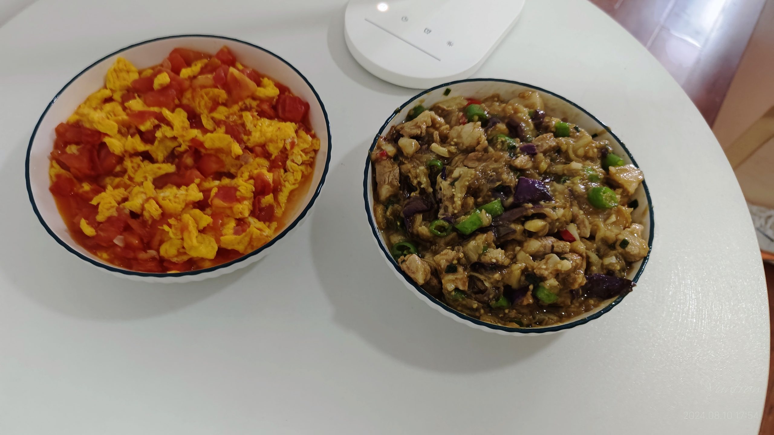 8月10号,第一次下厨,西红柿炒鸡蛋,和肉末茄子。