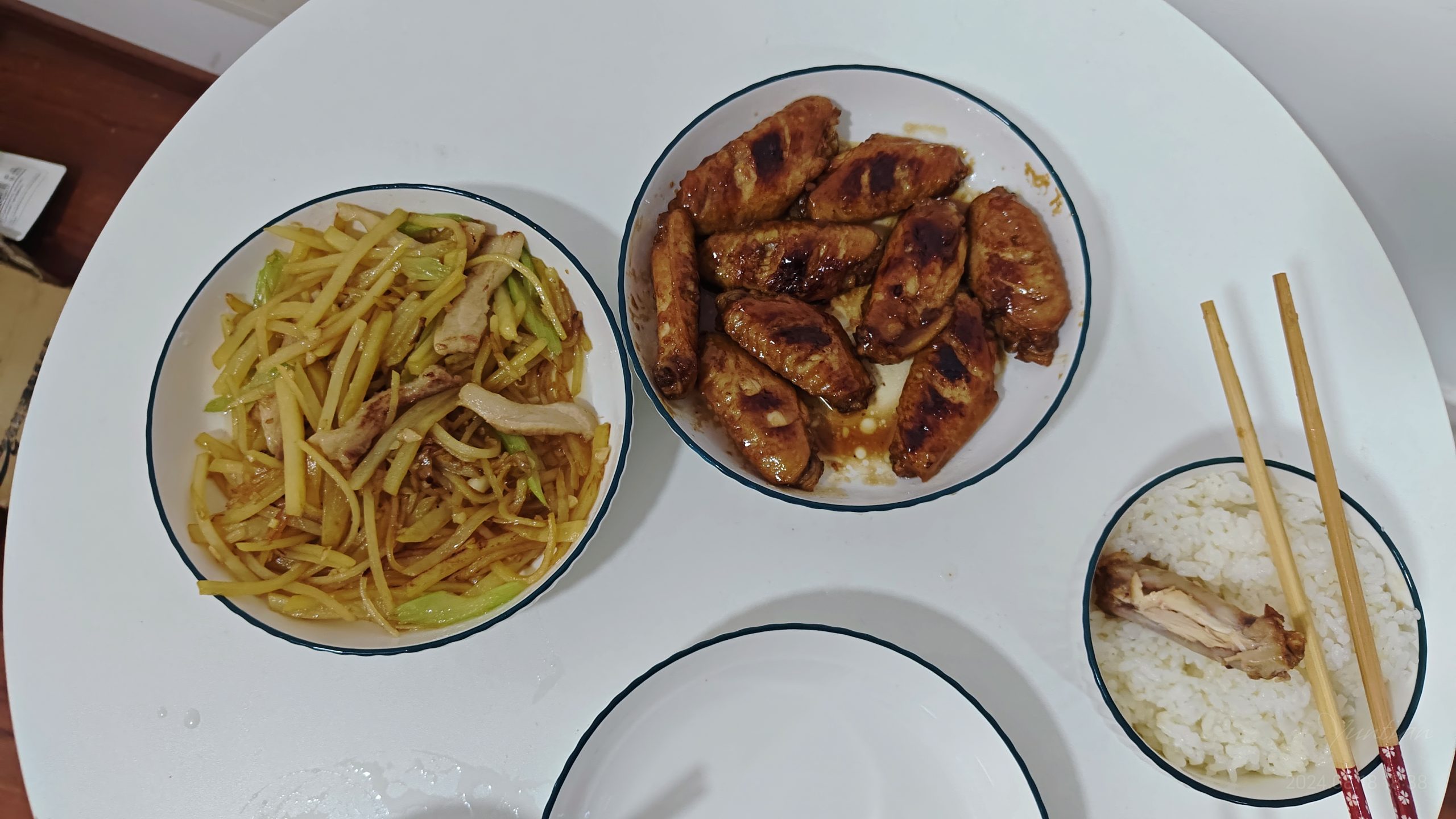 炒土豆丝,和可乐鸡翅,两个吃起来都没问题就是卖相不太行。