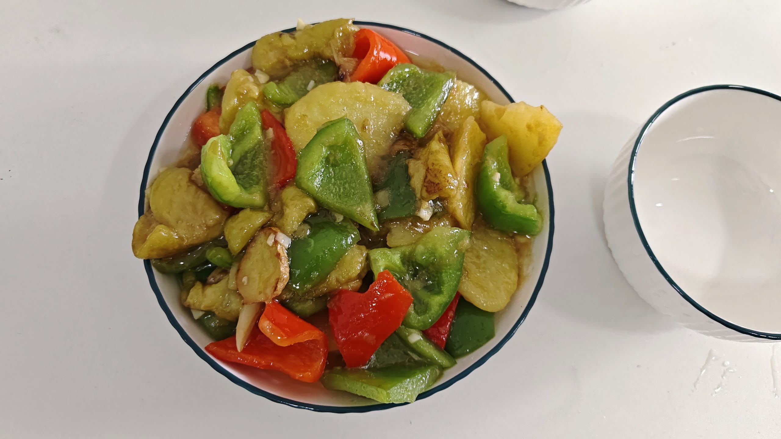 地三鲜,这个菜做起来相对复杂一点。问题还是茄子没有定型。