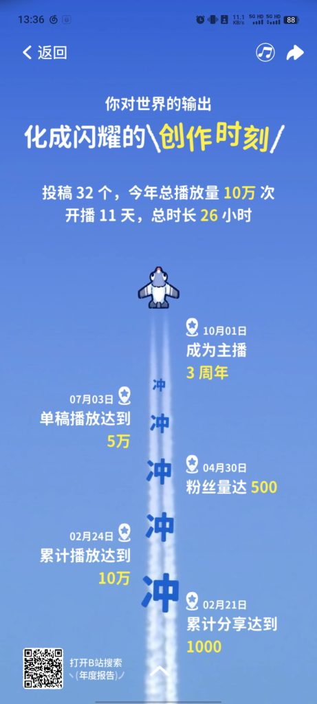 今年b站给我的年终总结,目前17.3w总播放加上200块钱创作激励,粉丝数从120变成720,翻了6倍也算微不足道的成果,不如说过于微不足道了。