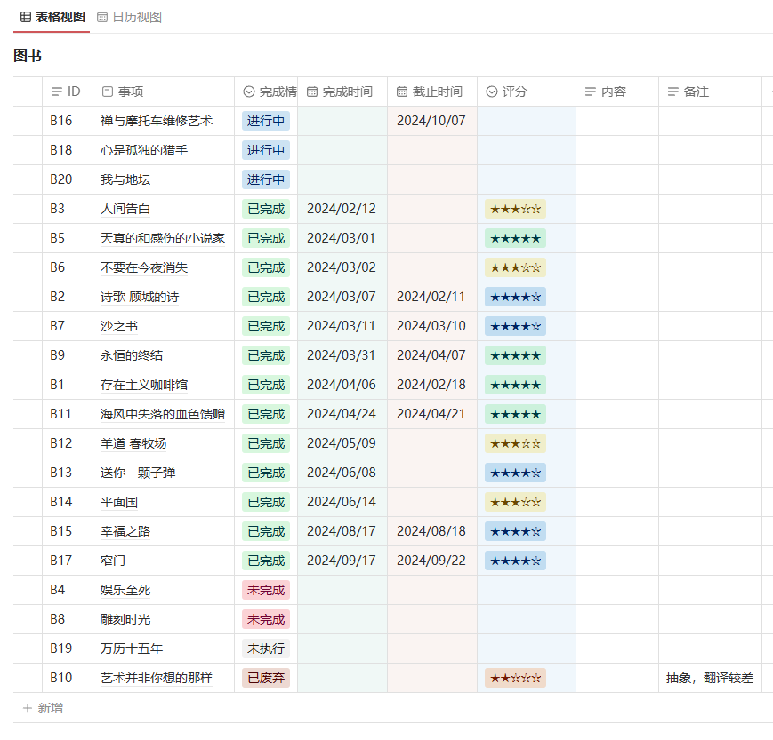 在正文开始之前,首先说一下今年相比于去年我做了哪些改变。其中最重要的工具“欲望订单”在今年被细分为多个表格,每一件事都被标注为一个ID。