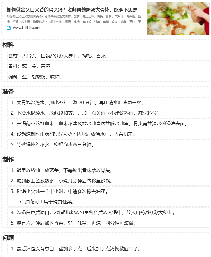 大部分菜会首先学习一下并记录为笔记,比如F-10冬瓜大骨汤就像这样。